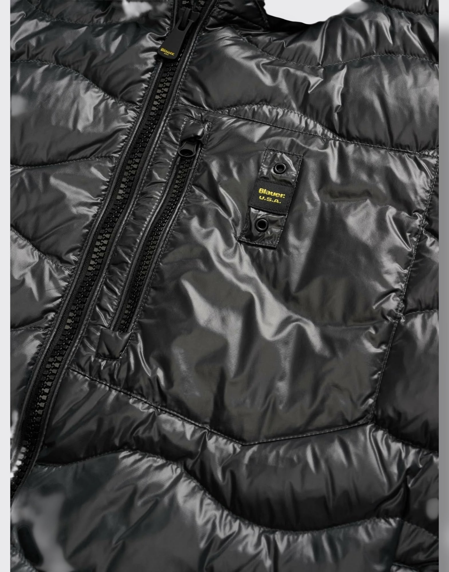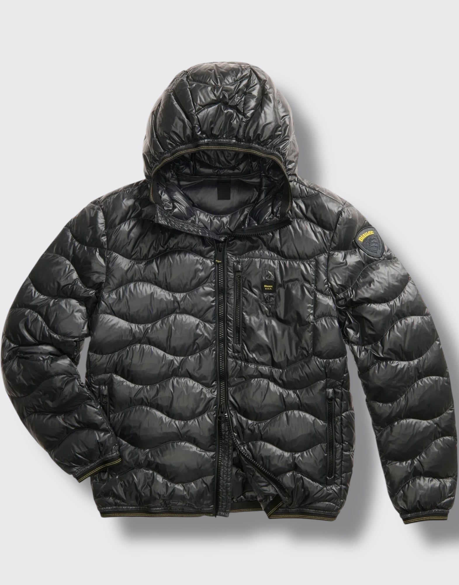Piumino trapuntato ad onde orizzontali. Taschina applicata sul petto a sinistra per donare al capo iconico Blauer un tocco più funzionale. Imbottitura naturale in piuma, calda e non ingombrante; dedicato a chi vuole essere sempre alla moda in ogni occasione.• Cappuccio fisso• Foderato in tono• Imbottito piuma 90/10 gr.165• Chiusura con zip• Copri cursore sul collo• Tasche con zip• Taschino con zip sul petto• Elastico rigato sul profilo del cappuccio, polsino e fondo.• Tasche interne doppie: aperte e con velcro• Patch e passante con logo