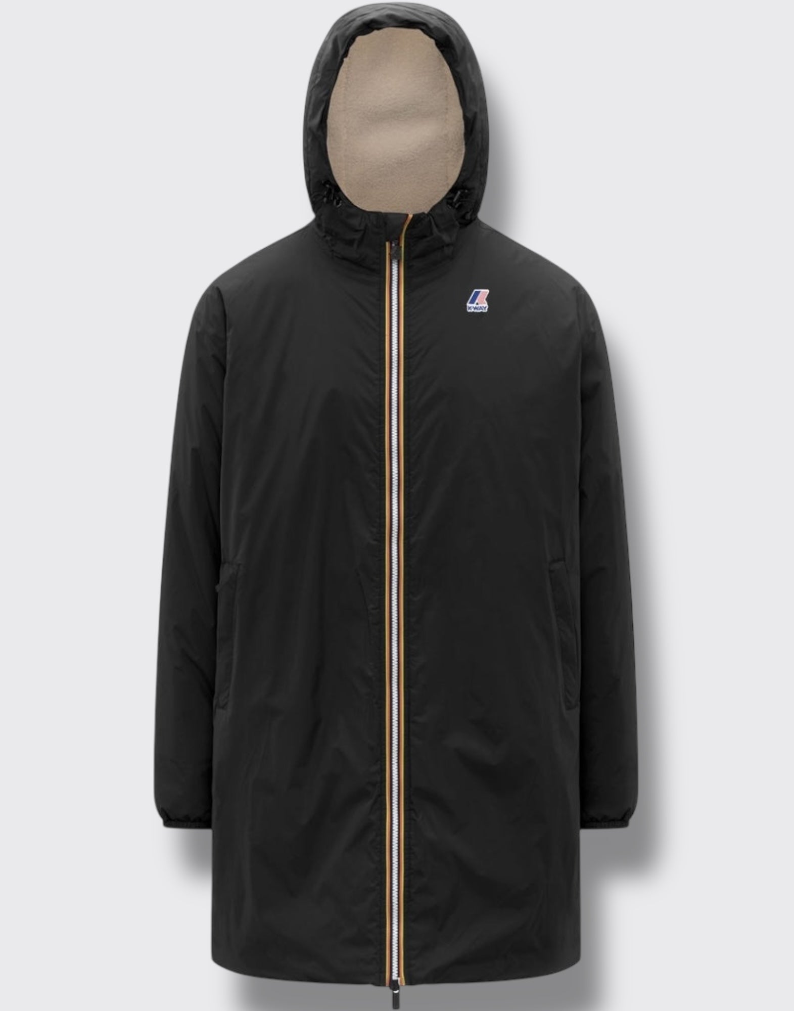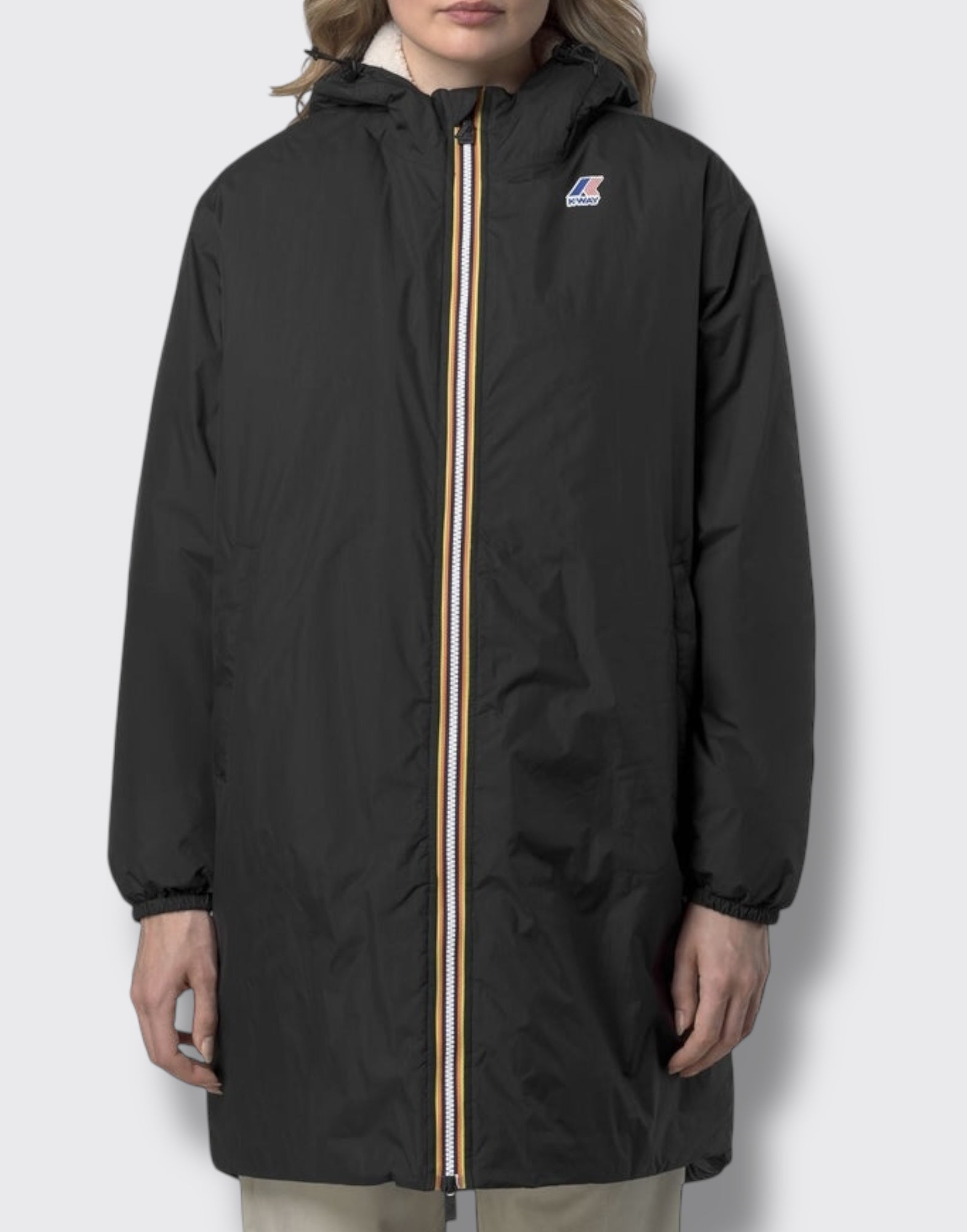 Giacca antipioggia impermeabile unisex nera a 3/4 di lunghezza con fodera in sherpaEiffel è l'impermeabile unisex dedicato all'inizio della stagione più fredda. Il modello si caratterizza per l'estrema funzionalità e i dettagli grafici distintivi come il tape a righe multicolor che impreziosisce la zip. Realizzato in nylon ripstop, è rifinito con rivestimento in sherpa alla texture aggiornata per essere ancora più soffice e piacevole al tatto.Tessuto nylon ripstop impermeabile, idrorepellente, antivento, traspiranteFodera in tessuto sherpaImbottitura ovatta peso medioGrado di calore medioCuciture termonastrateCappuccio regolabile con corda elasticaChiusura con zipPatta interna antiventoPolsi con elastico2 tasche con zipFitting regolareLogo stampato colorato