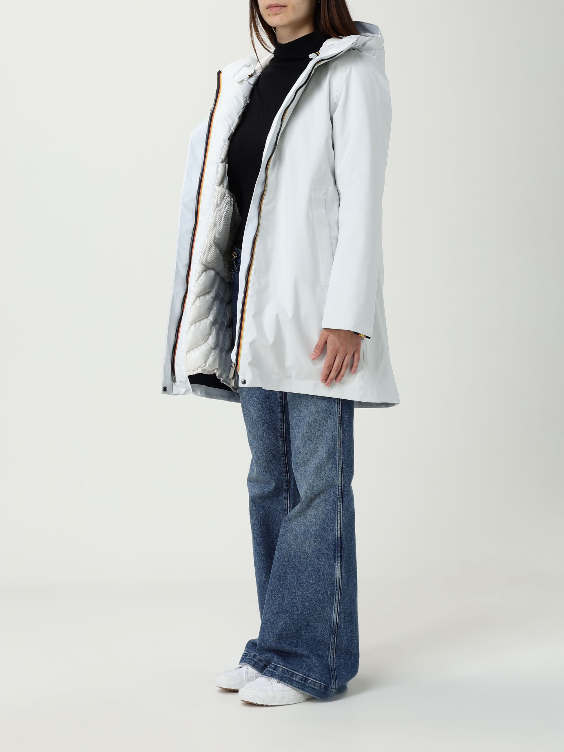 Mathiel è una giacca a tre quarti da donna, ideale per l inverno, che interpreta i look quotidiani con uno stile cittadino e linee pulite grazie all assenza di loghi sul fronte. Questa giacca, dalla vestibilità accogliente con chiusura a zip e cappuccio avvolgente regolabile, presenta un guscio in tessuto tecnico a tre strati con nylon esterno, membrana intermedia e maglina con cuciture interne termonastrate dal colore a contrasto. La calda imbottitura in ovatta fluttuante e una confortevole trapuntatura interna garantiscono una protezione ottimale dal freddo più intenso. Il modello ha le tasche a filetto e il dettaglio del tape K-Way sul polsino.Tessuto tre strati elasticizzato, idrorepellente, antiventoImbottitura ovatta fluttuanteGrado di calore altoChiusura con zipTasche con bottoni a scomparsaCappuccio regolabileCuciture termonastrateFitting regolareLogo inserito nel fondo manica