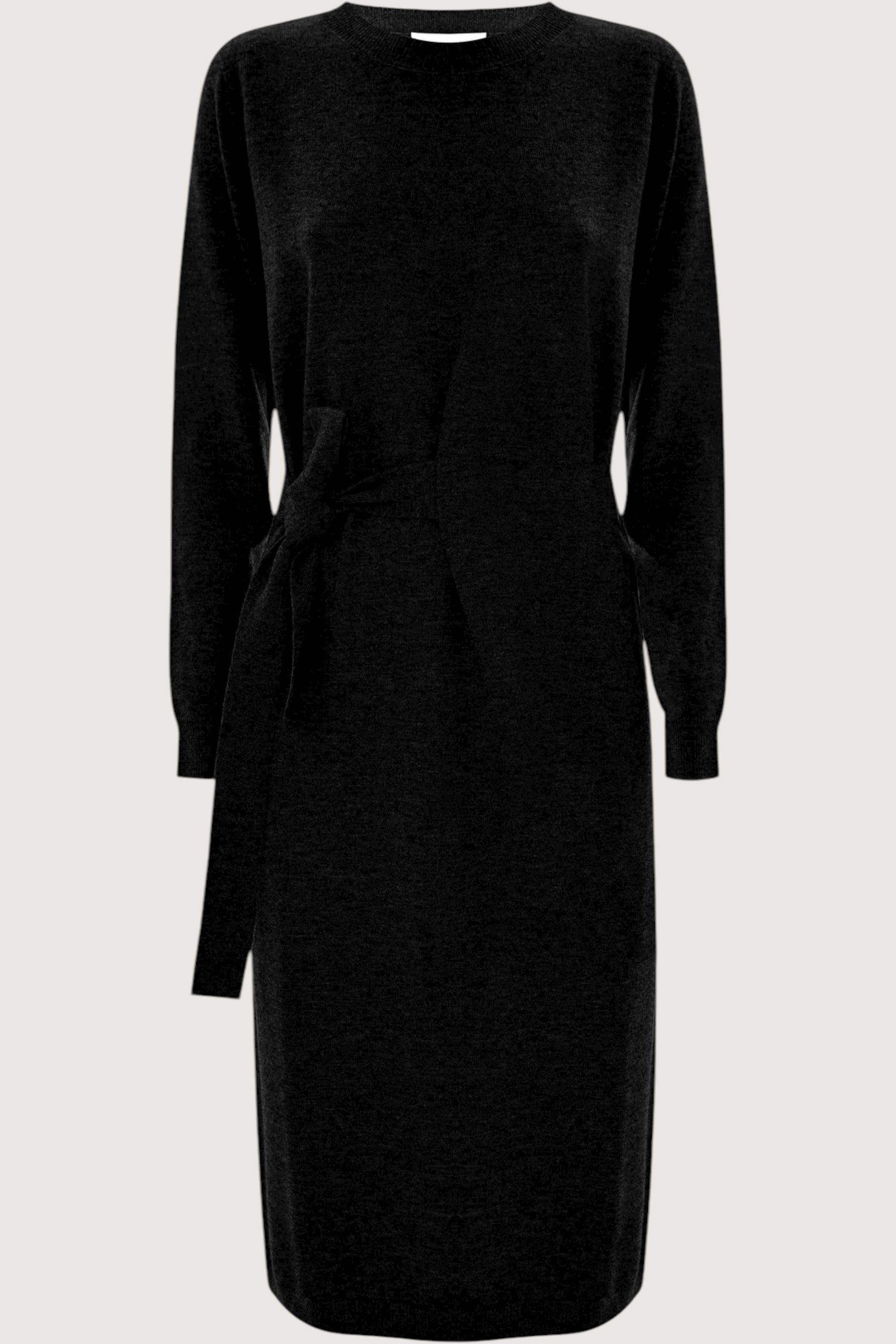 Elegante abito in maglia a maniche lunghe della capsule Pure Verve. Il capo è caratterizzato da una vestibilità aderente e da una fusciacca da annodare in vita per definire la silhouette.