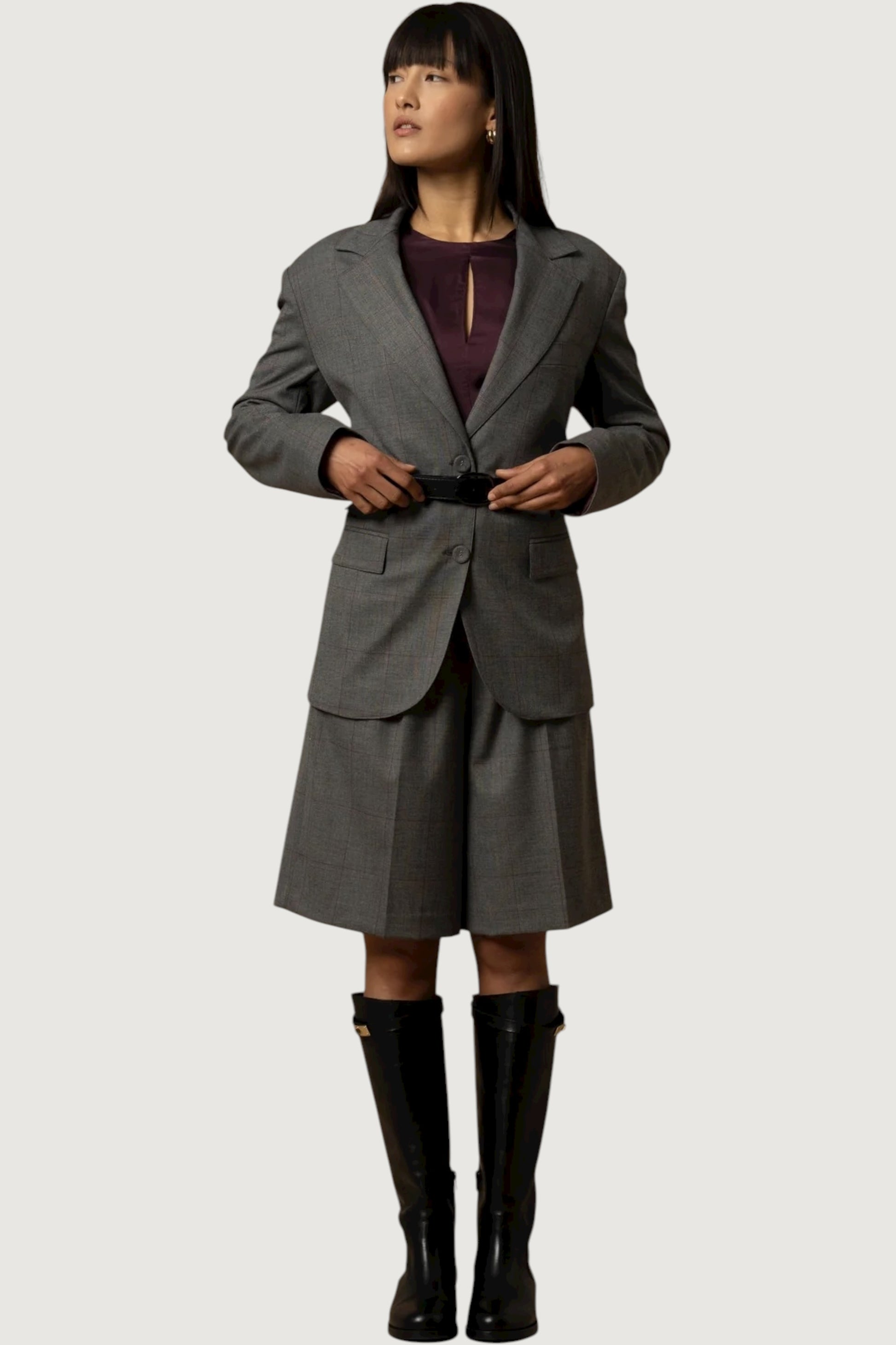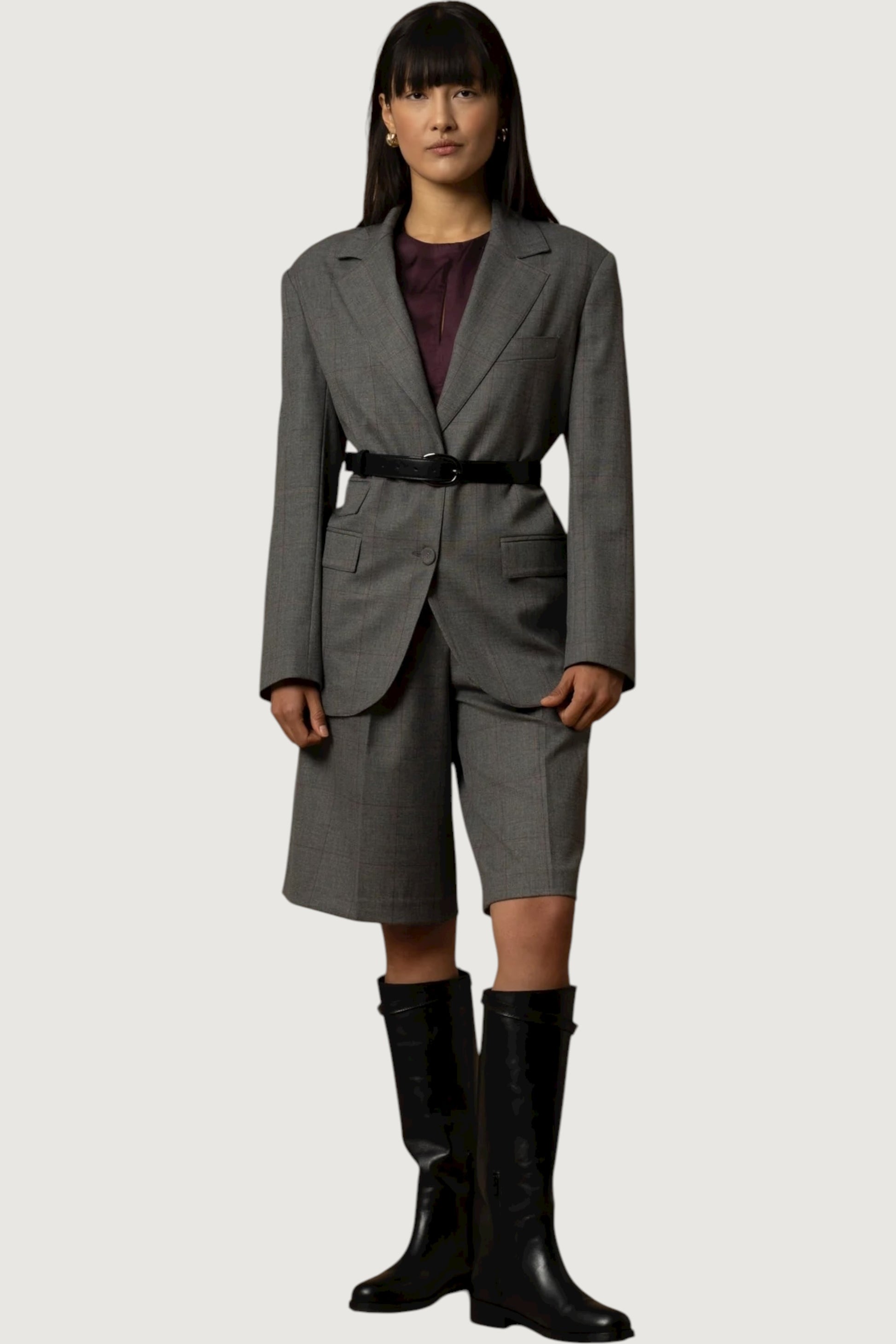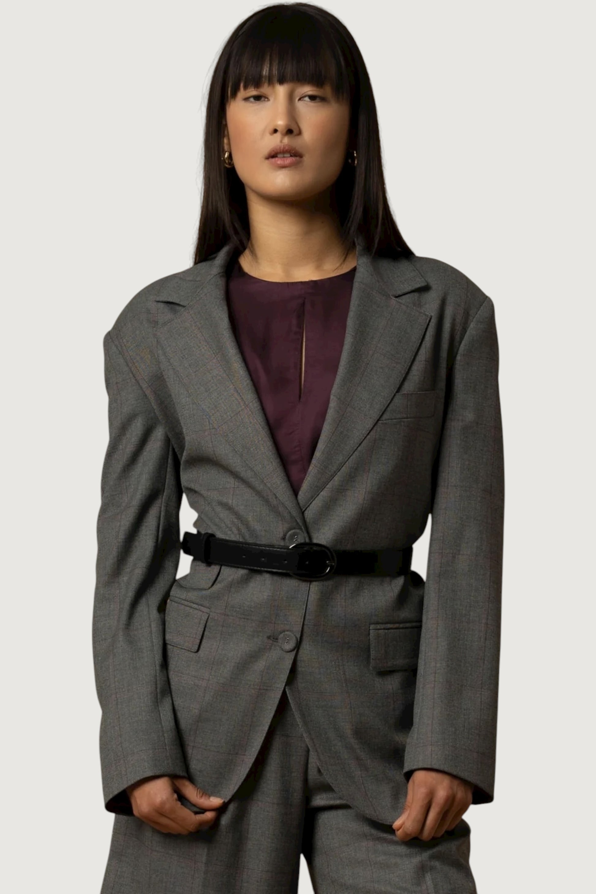 Questa giacca con bottoni presenta la cintura in vita, un dettaglio che definisce e struttura la silhouette. Completano la struttura del modello lo scollo con revers e le tasche con pattina.
