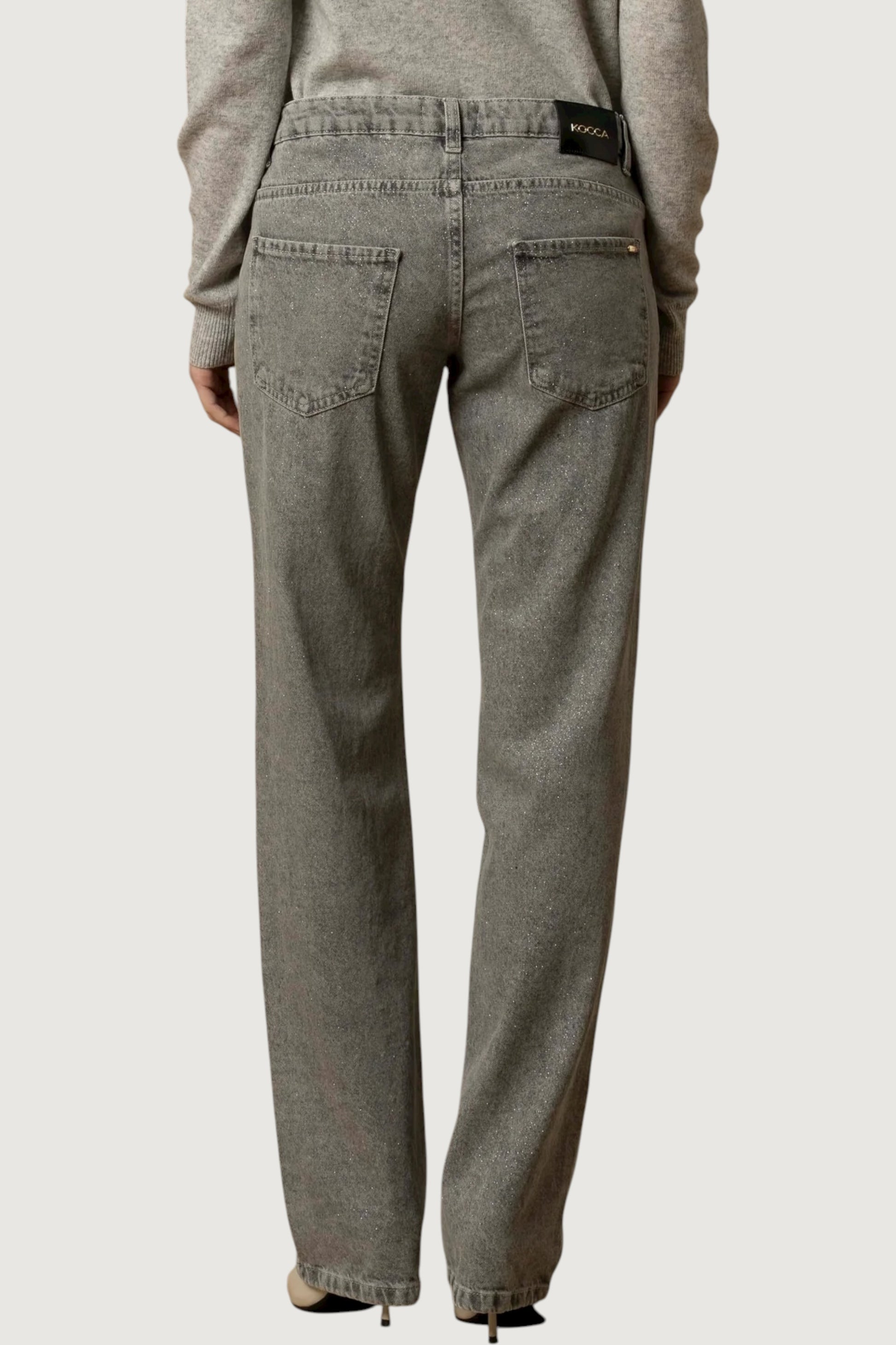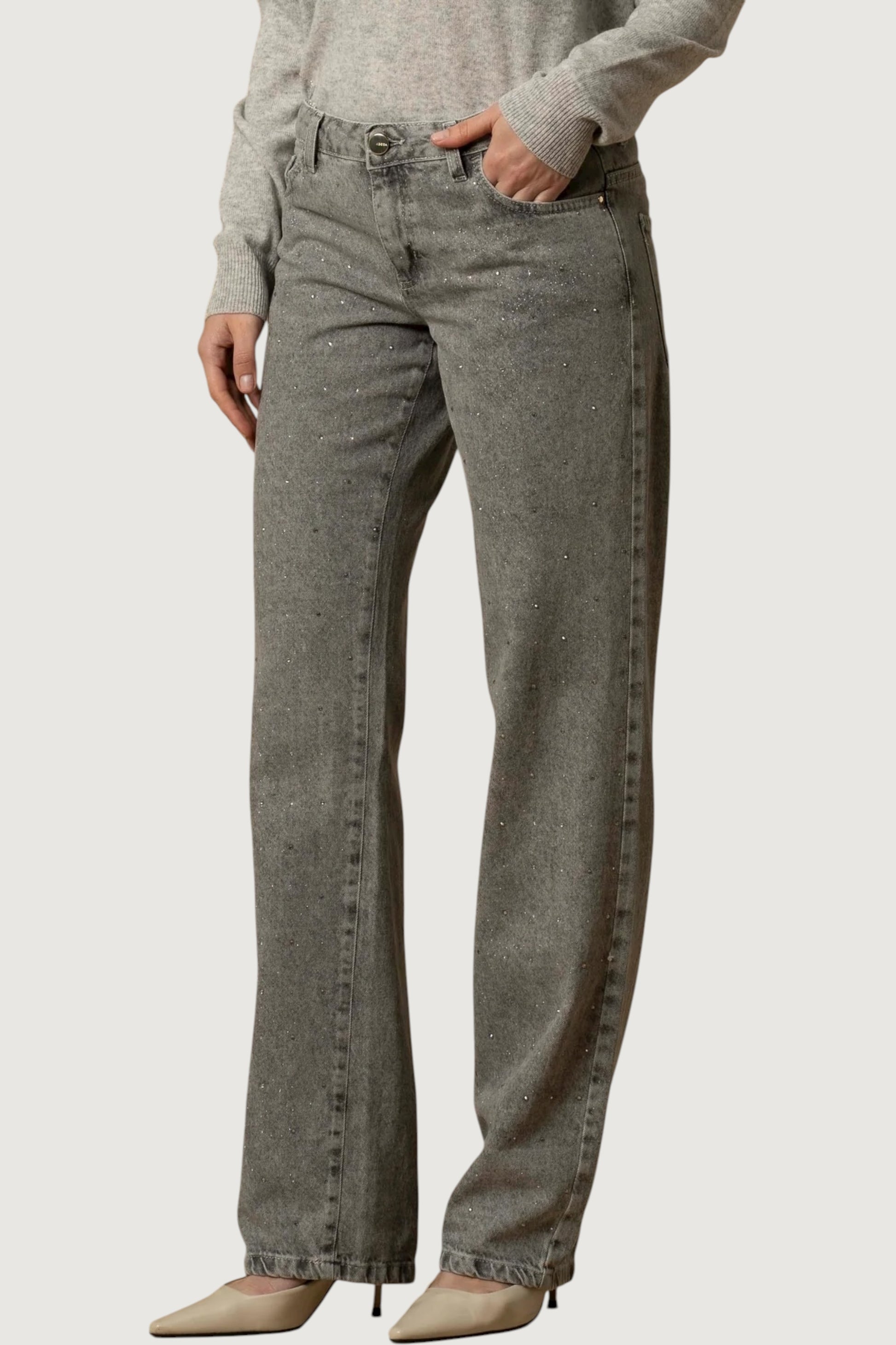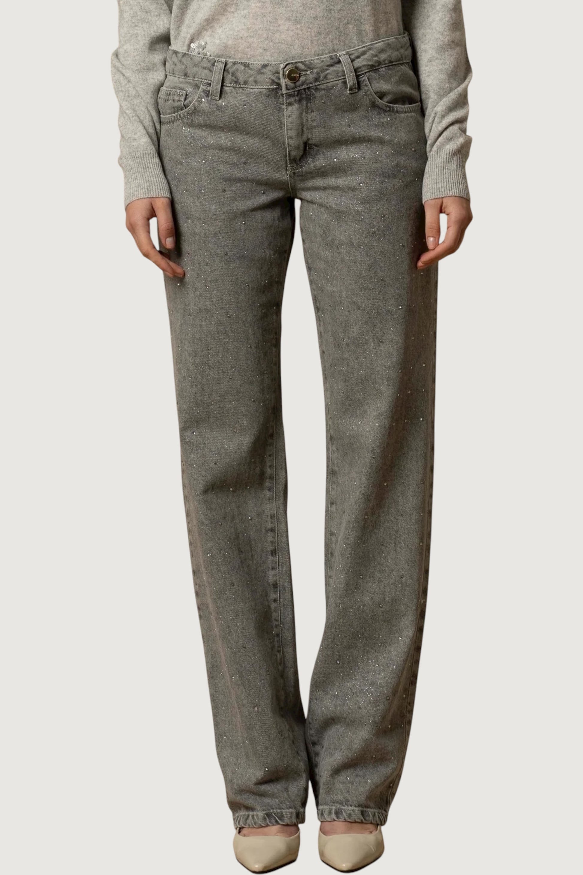 Il tessuto illuminato da piccoli strass regala a questi pantaloni in denim un piacevole accento glam chic. Eleganti e versatili, presentano la gamba dritta, tasche ai lati, passanti in vita e chiusura con zip nascosta e bottone logato.