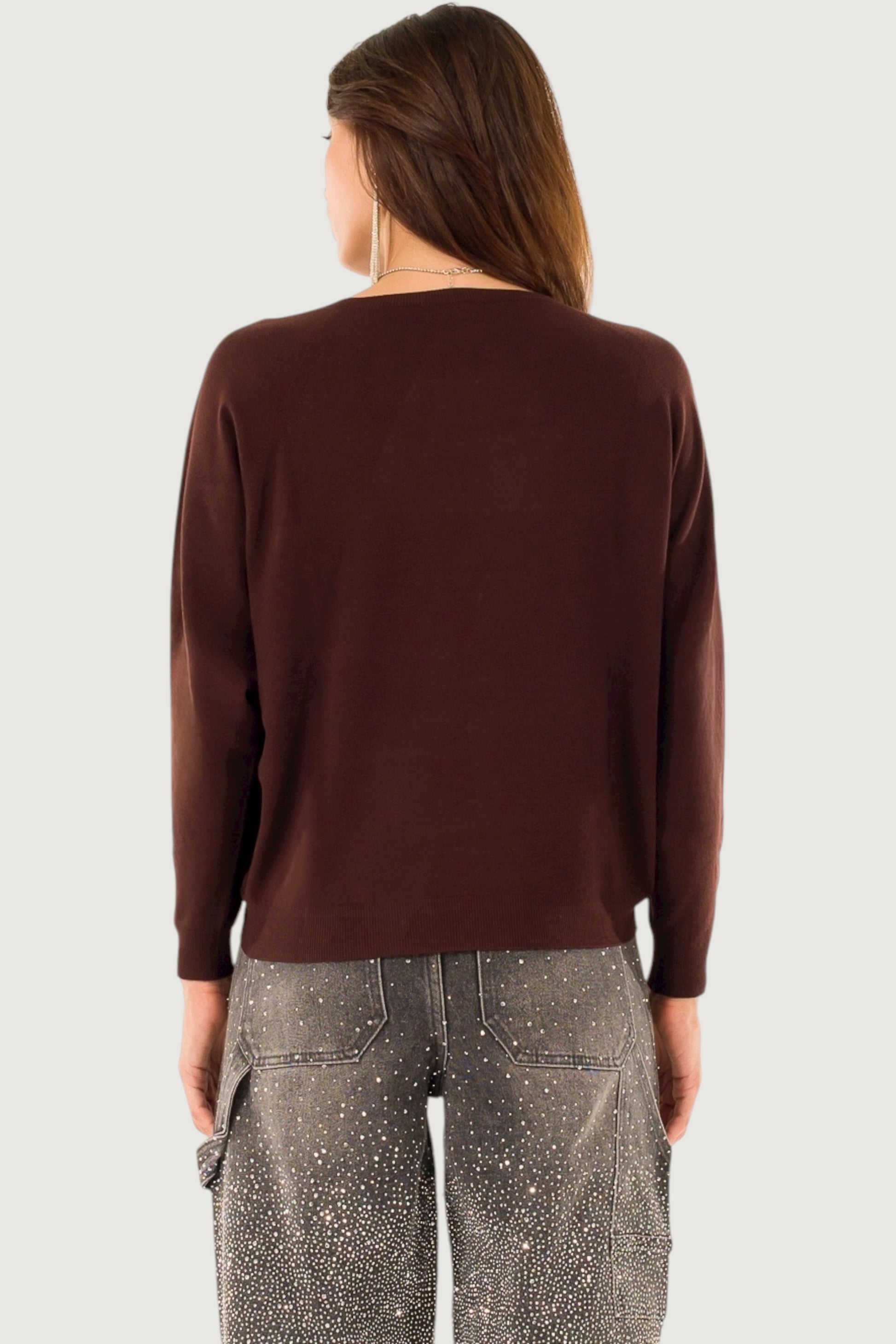 Maglioncino in calda viscosa, scollo leggermente a barchetta e vestibilità over