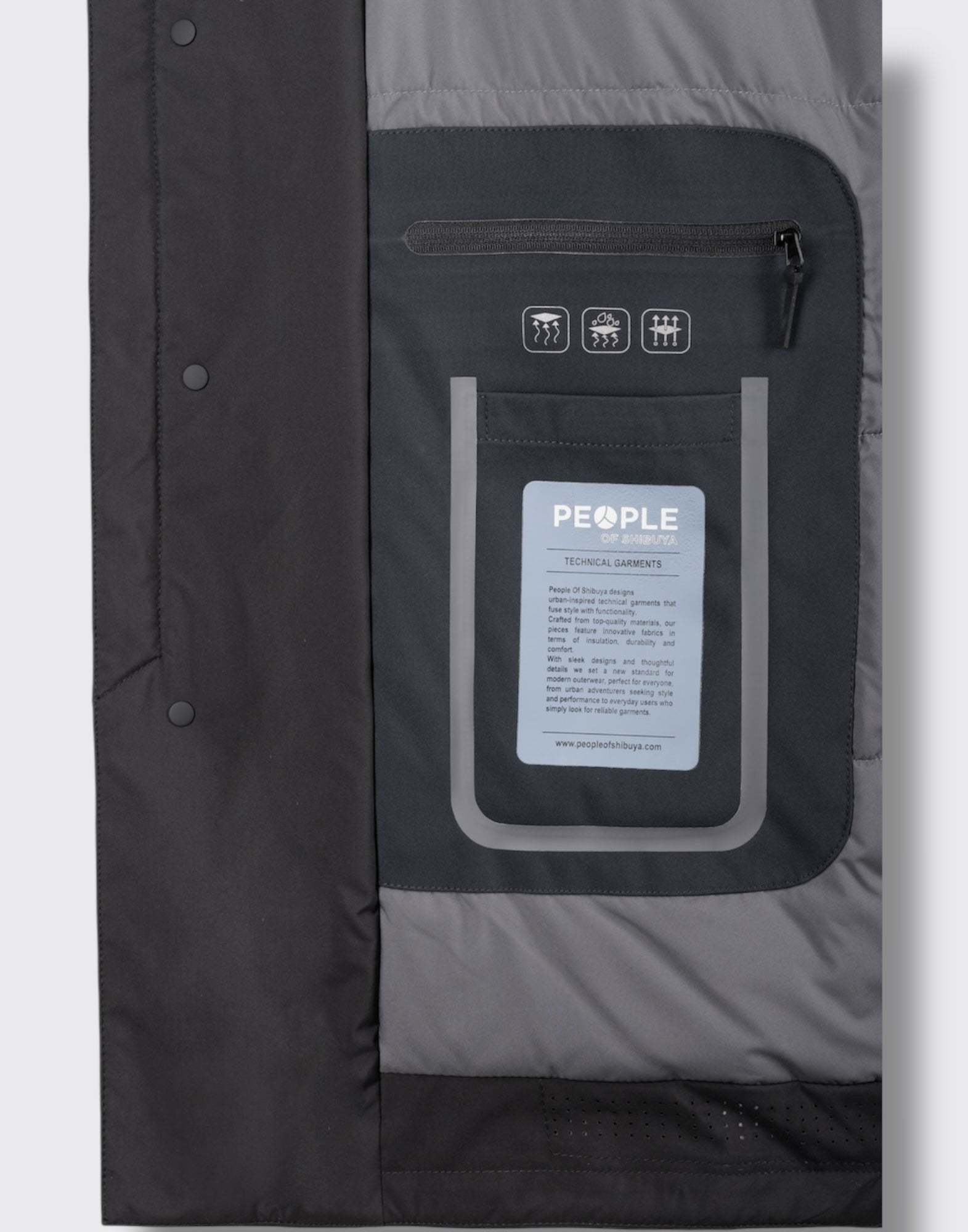 Trench corto in tessuto tecnico con collo camicia e cappuccio staccabile con zip e coulisse, interno trapuntato in isolante termico FELLEX 100% riciclato.Zip pressofusa doppio cursore con zipper puller personalizzato. Coprizip principale con chiusura bottoni a pressione nascosti.Aeratori laserati interni per agevolare l indossaggio e la traspirazione.Tasche esterne con bottone a calamita nascosto.Tasche interne e porta cellulare termonastrate con chiusura a zip.Badge brand su manica sinistra.Rubber label su manica destra con coordinate geografiche relative allo Shibuya Crossing.Composizione: 100% polyester.