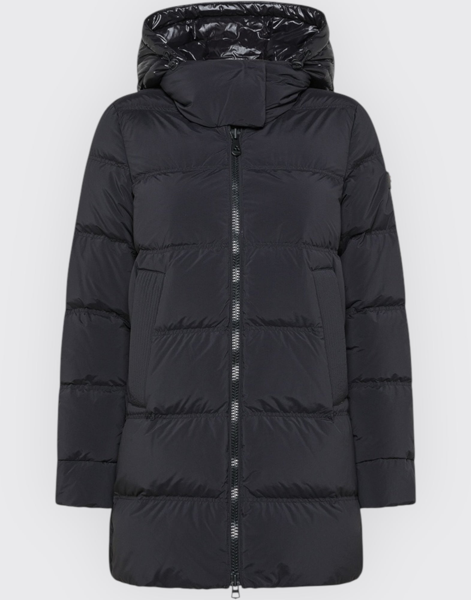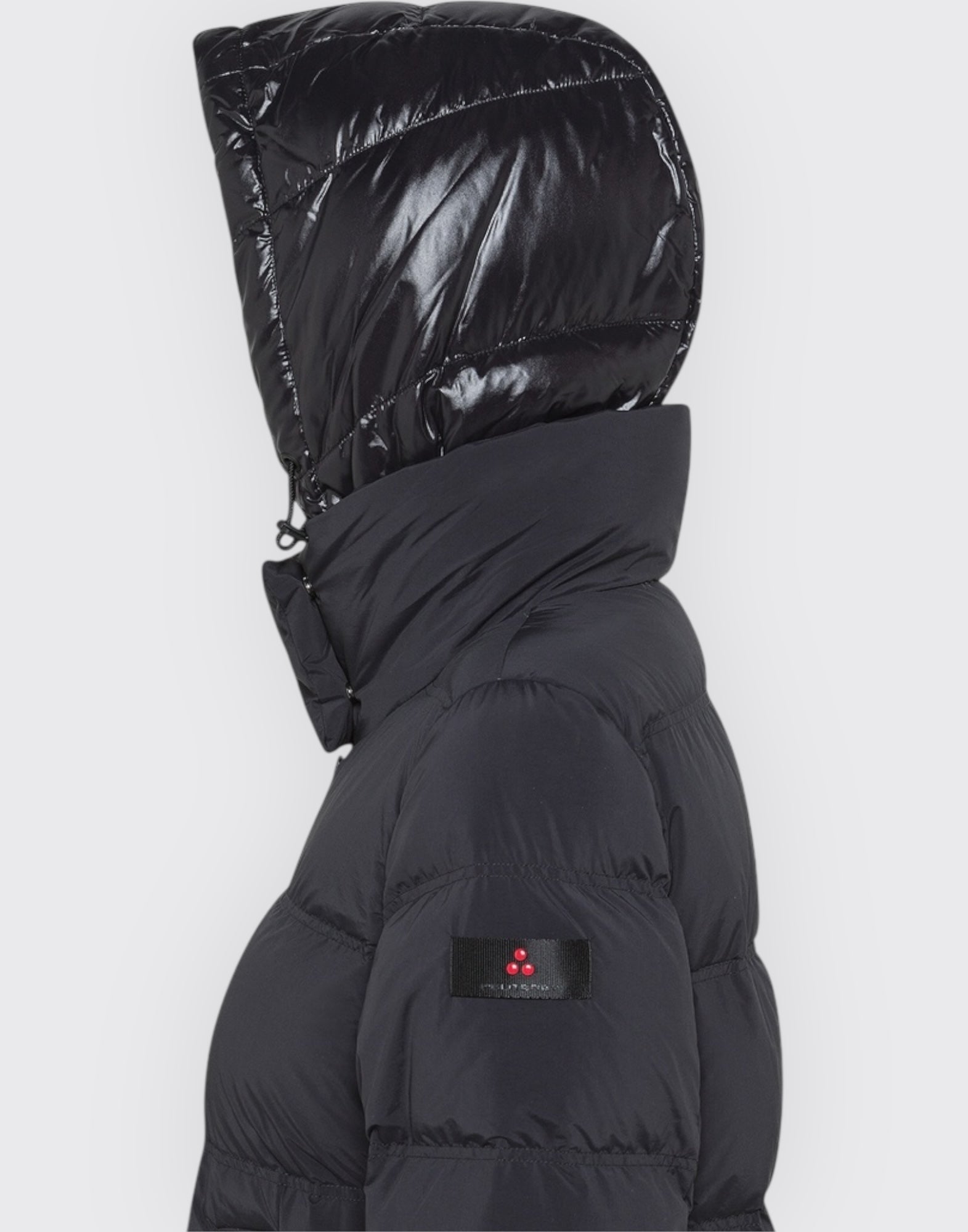 Piumino medio costruito in doppio tessuto: popeline leggero in nylon e microfibra di polyester, che acquisisce densità e una mano pesca al tatto, grazie all elevata temperatura di tintura a 130°. Il cappuccio, con tiranti regolabili, è in nylon particolarmente lucente e morbido. Il risultato finale è un capo bmat dall aspetto ricercato, water repellent e wind resistant, con trattamento PFC free, nel rispetto dell ambiente. Tessuto realizzato con filato riciclato certificato e imbottitura in piuma riciclata.Lunghezza: mediaCappuccio fisso a contrasto materialeTasche alteImbottitura sostenibileNylon leggero e microfibra di polyesterComposizione:70% Poliamide 30% Poliestere