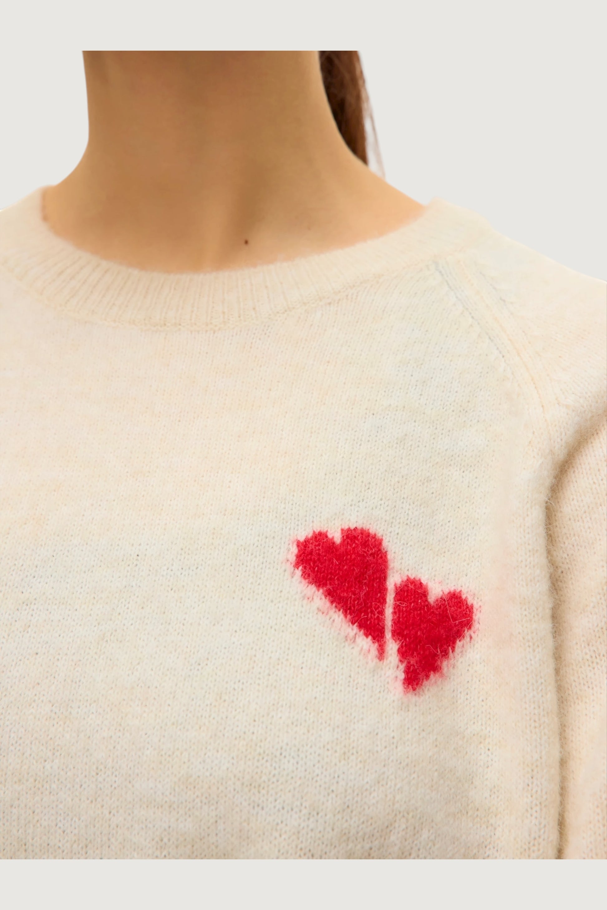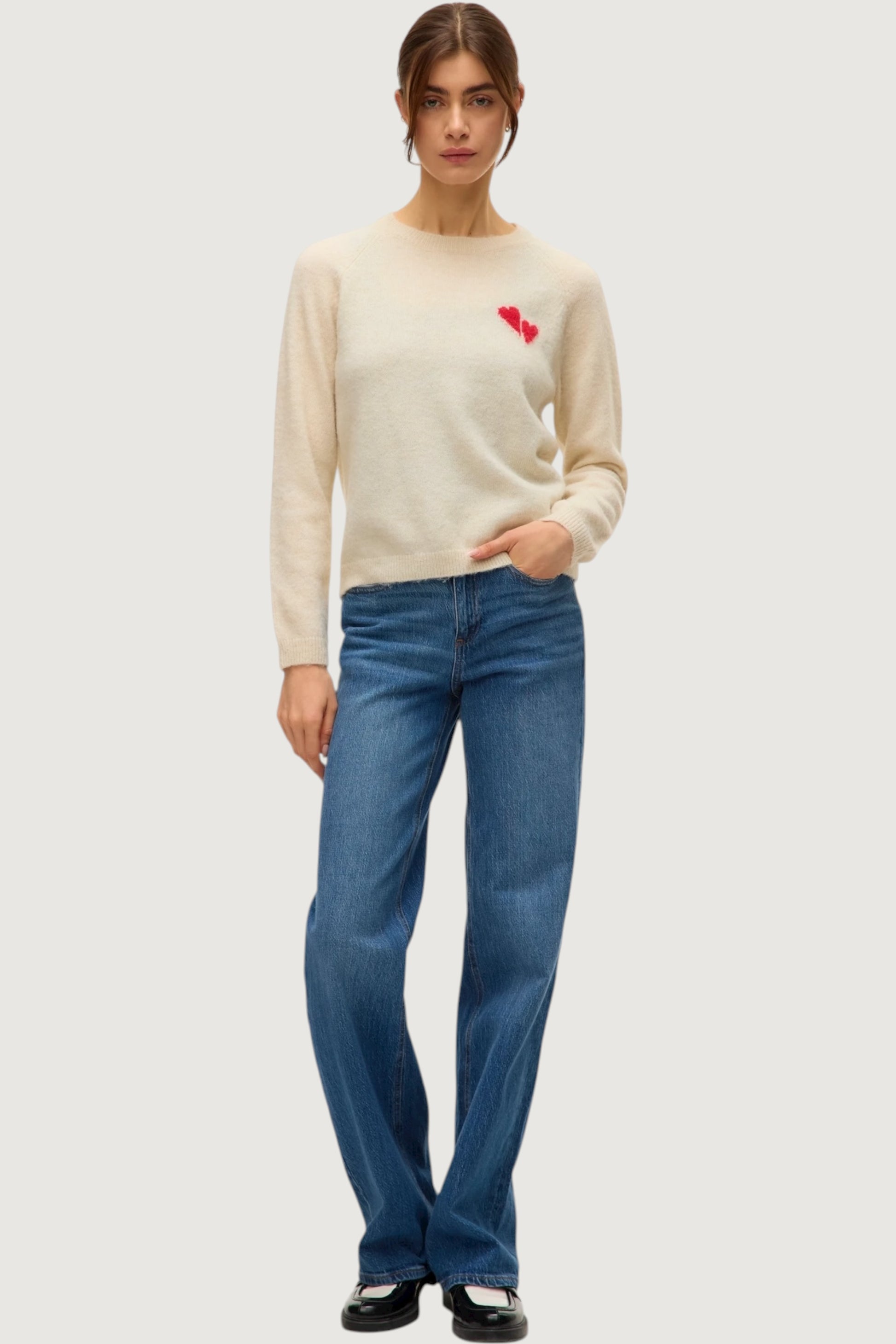 Maglioncino girocollo, morbido e comodo.Presenta due cuoricini sulla parte laterale alta.