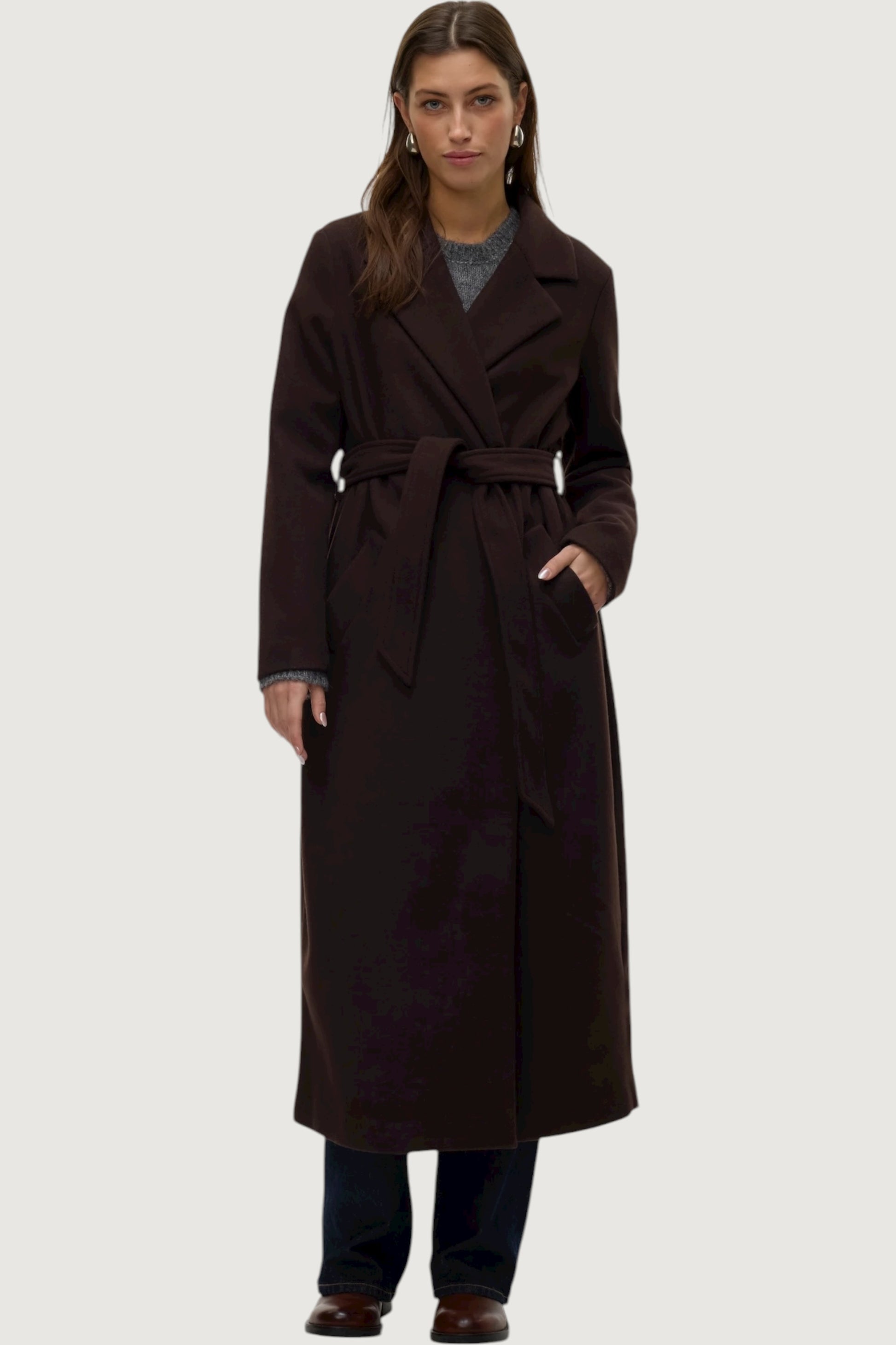 Cappotto Lungo con Chiusura con cintura e tasche laterali