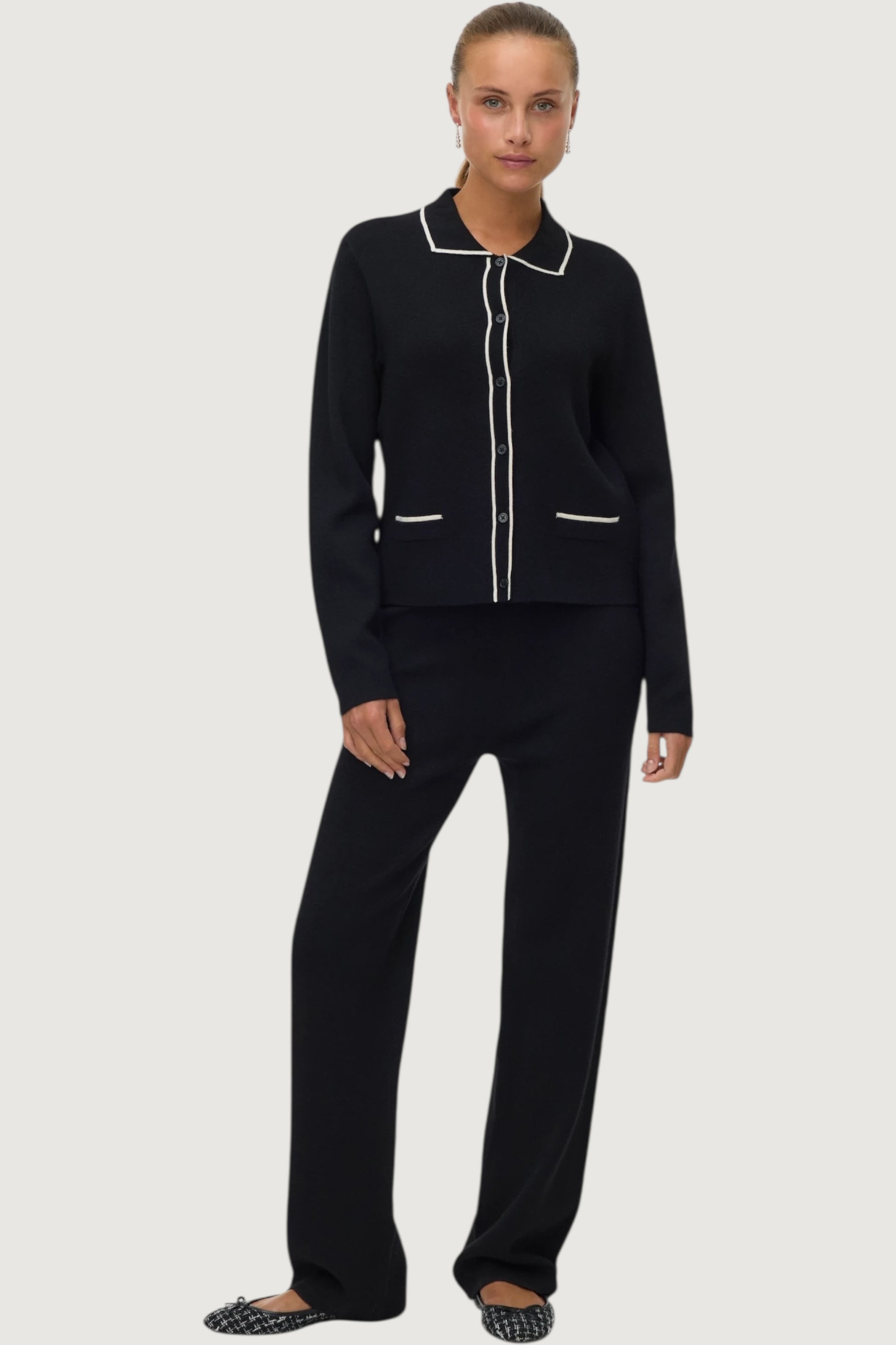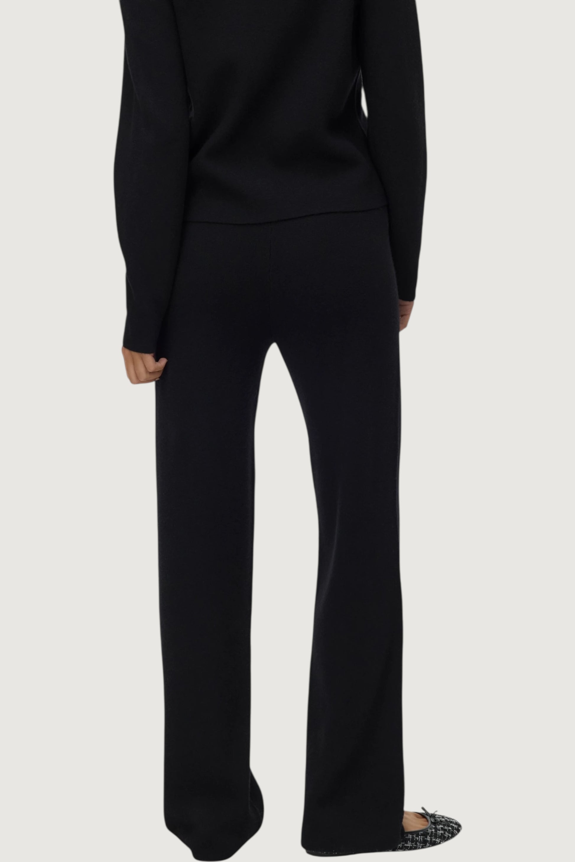 Pantalone a palazzo in calda viscosa con elastico in vita e dettaglio a contrasto