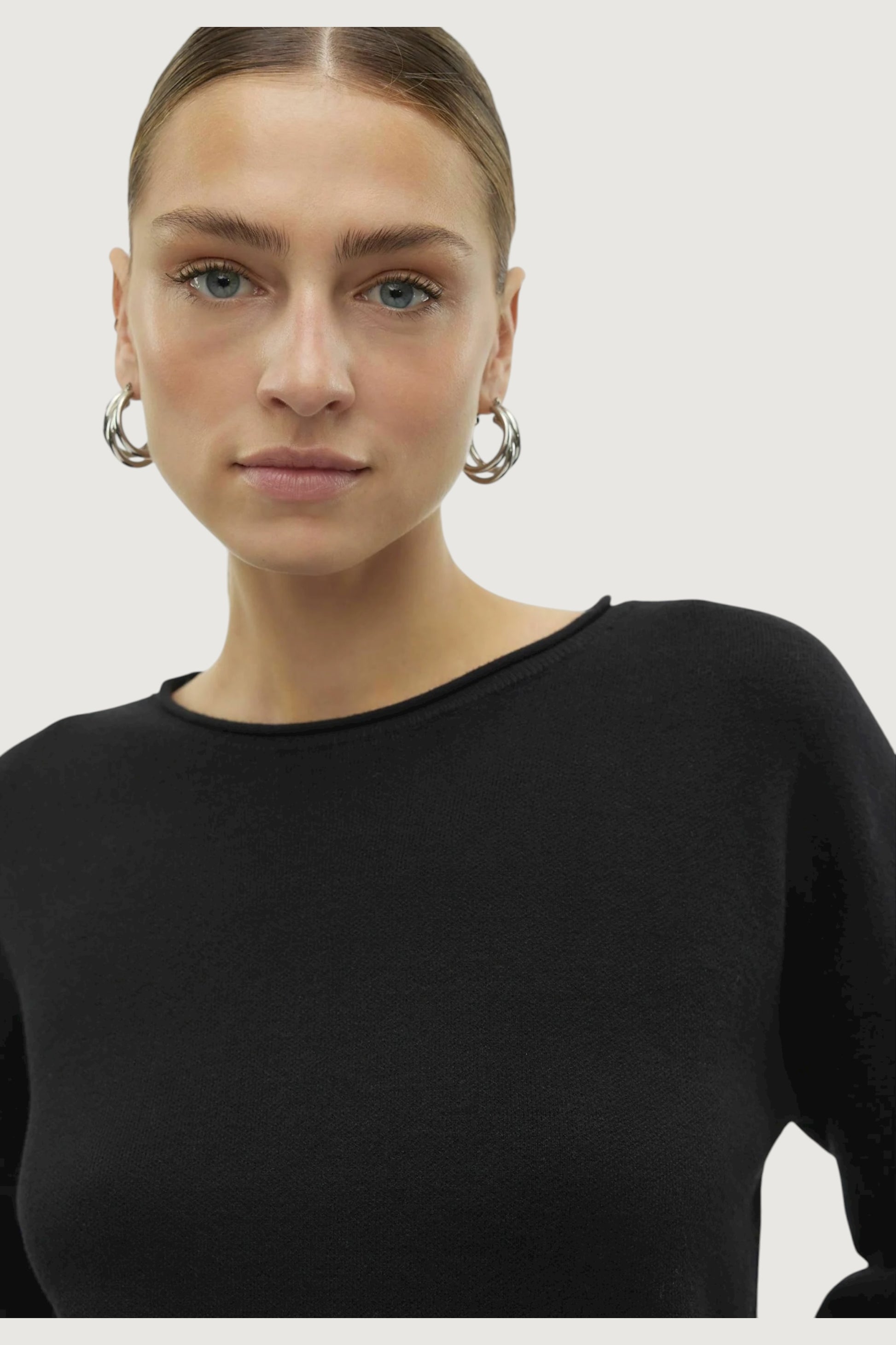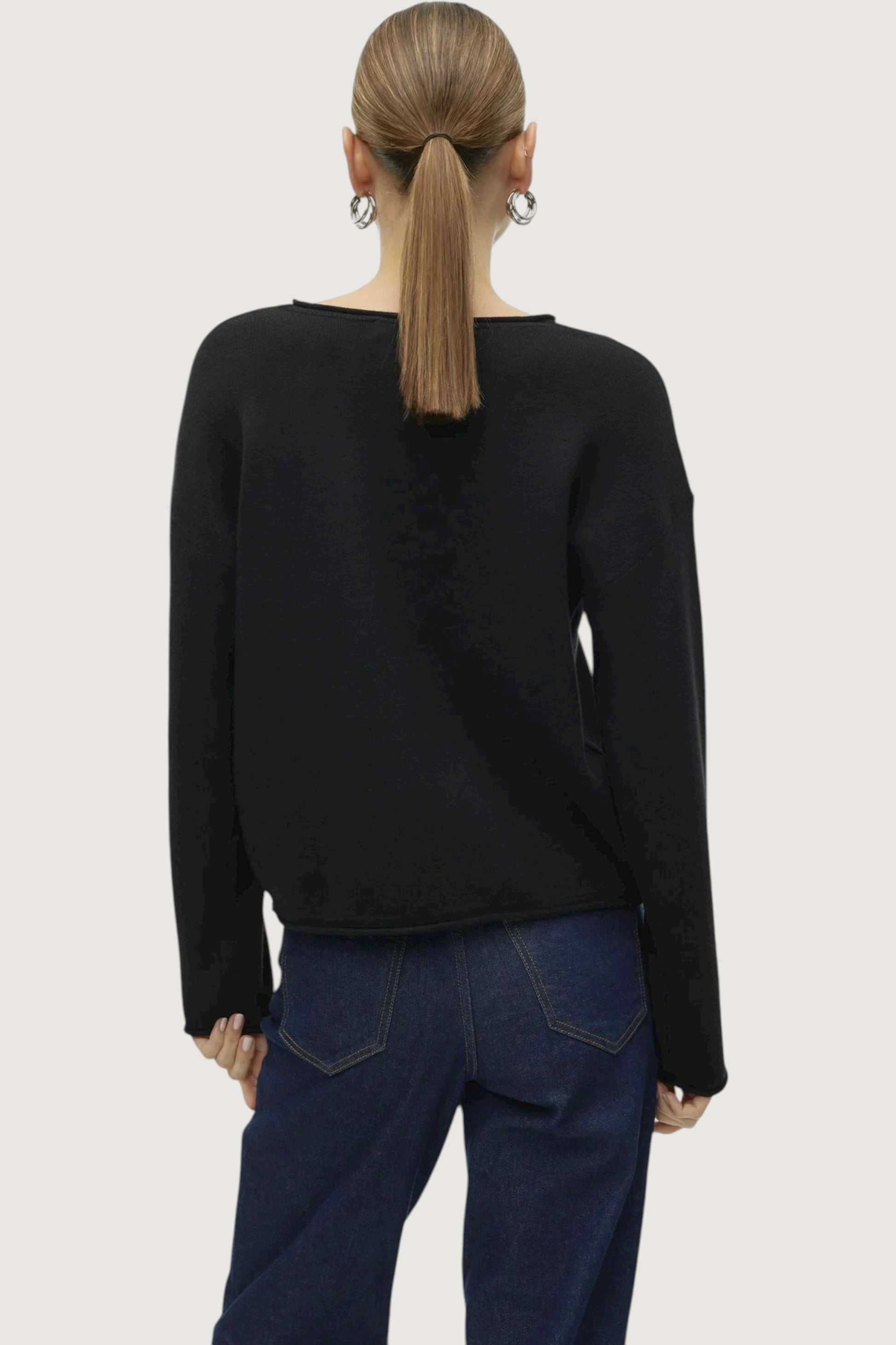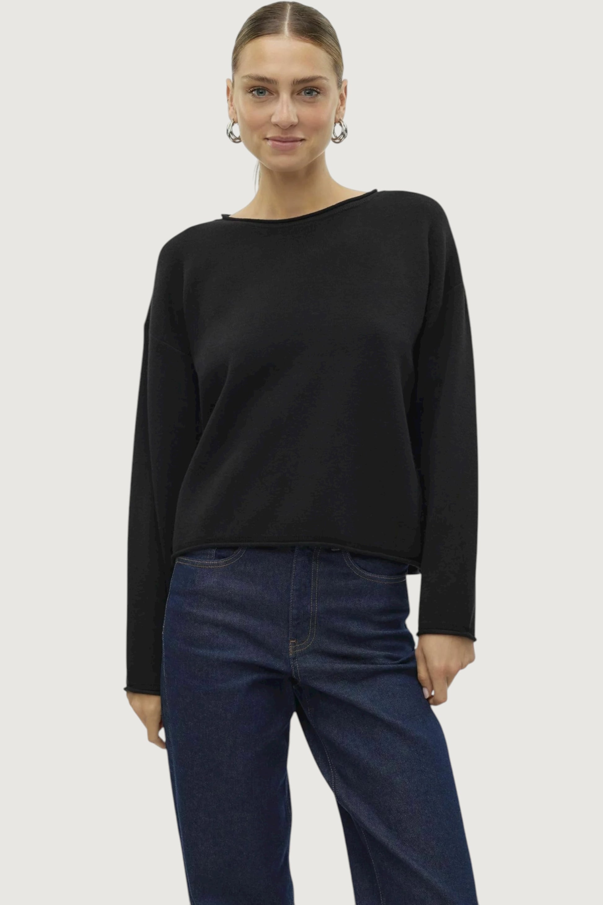 Maglione a scatoletta in calda viscosa con orli risvoltati